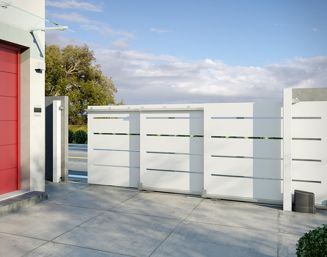 Kit poarta culisanta telescopica marca FAC Italia max.6m deschidere , culiseaza in tandem ambele foi mobile astfel dubland viteza de deschidere respectiv inchidere a portii.Sistemul de culisare telescopica permite instalarea unei automatizari Roger Technology.Portile TELESCOPICE sunt utile pentru situatiile in care nu exista spatiu suficient de culisare, la deschiderea portii.
